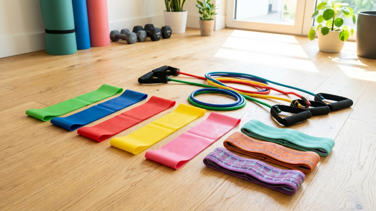Most bands are colour-coded by resistance. For a complete home gym setup, you want a range from light (5–15 lbs) for warm-ups and rehab, to heavy (40–50+ lbs) for compound movements. Tube sets that stack multiple bands together give you the most flexibility.